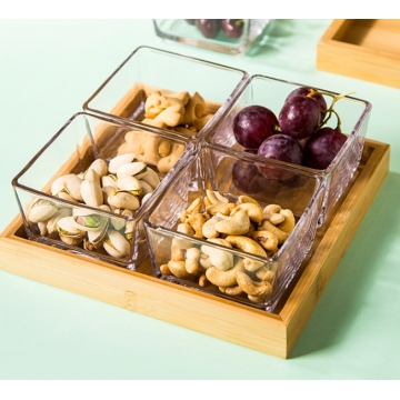 友来福果盘欧式简约玻璃水果盘点心盘方形收纳盒零食糖果家用带托盘四格